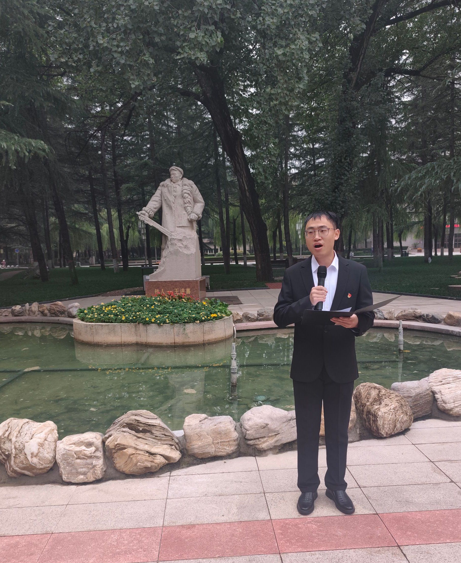 10月8日上午,石油工程学院于雁塔校区铁人广场开展纪念铁人王进喜诞辰102周年主题党日活动,石油工程学院党委书记司马文龙、学院研究生辅导员宋兴淼和研究生党员代表六十余人参加活动。