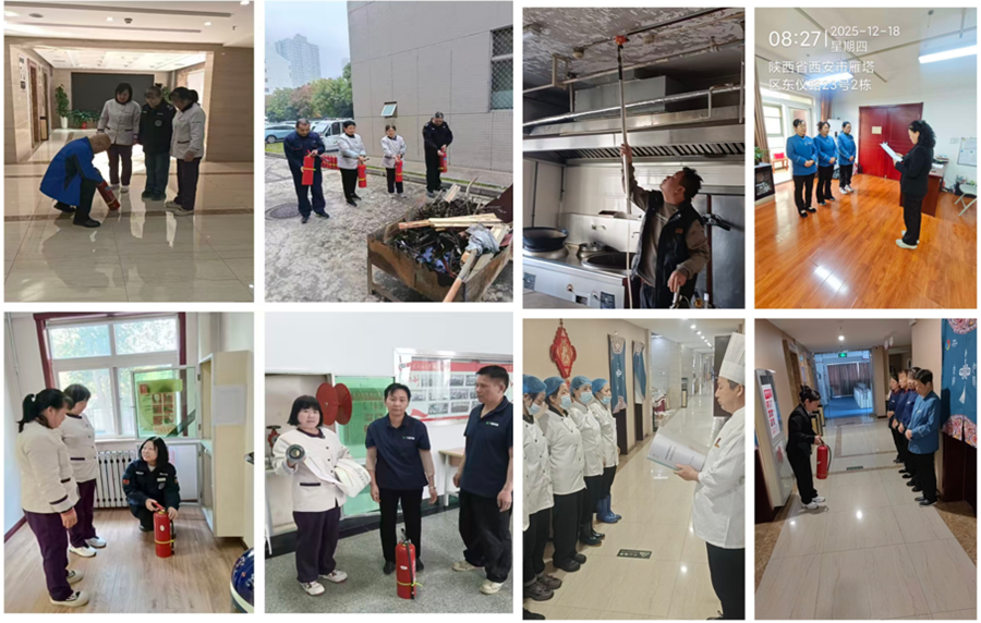 开展月度检查,提升精细管理。每月学院(培训中心)党政领导带队对培训中心北楼、南楼、明德楼进行安全大检查。检查组按照“全覆盖、无盲区”原则,对后厨、餐厅、客房、库房、健身房、锅炉房、办公区、会议区等区域进行了细致检查,并要求各部门不断完善安全制度体系,健全巡查机制,加强日常监督检查,强化对消防安全、食品安全和卫生防疫安全等重点领域的精细化管理。检查过程中,各部门坚持“边排查、边记录、边整改”,对可立即处理的安全隐患现场督促整改,对需持续跟进的问题建立台账、明确时限,确保所有隐患闭环管理,以“严、细、实”的工作作风为校园安全保驾护航。