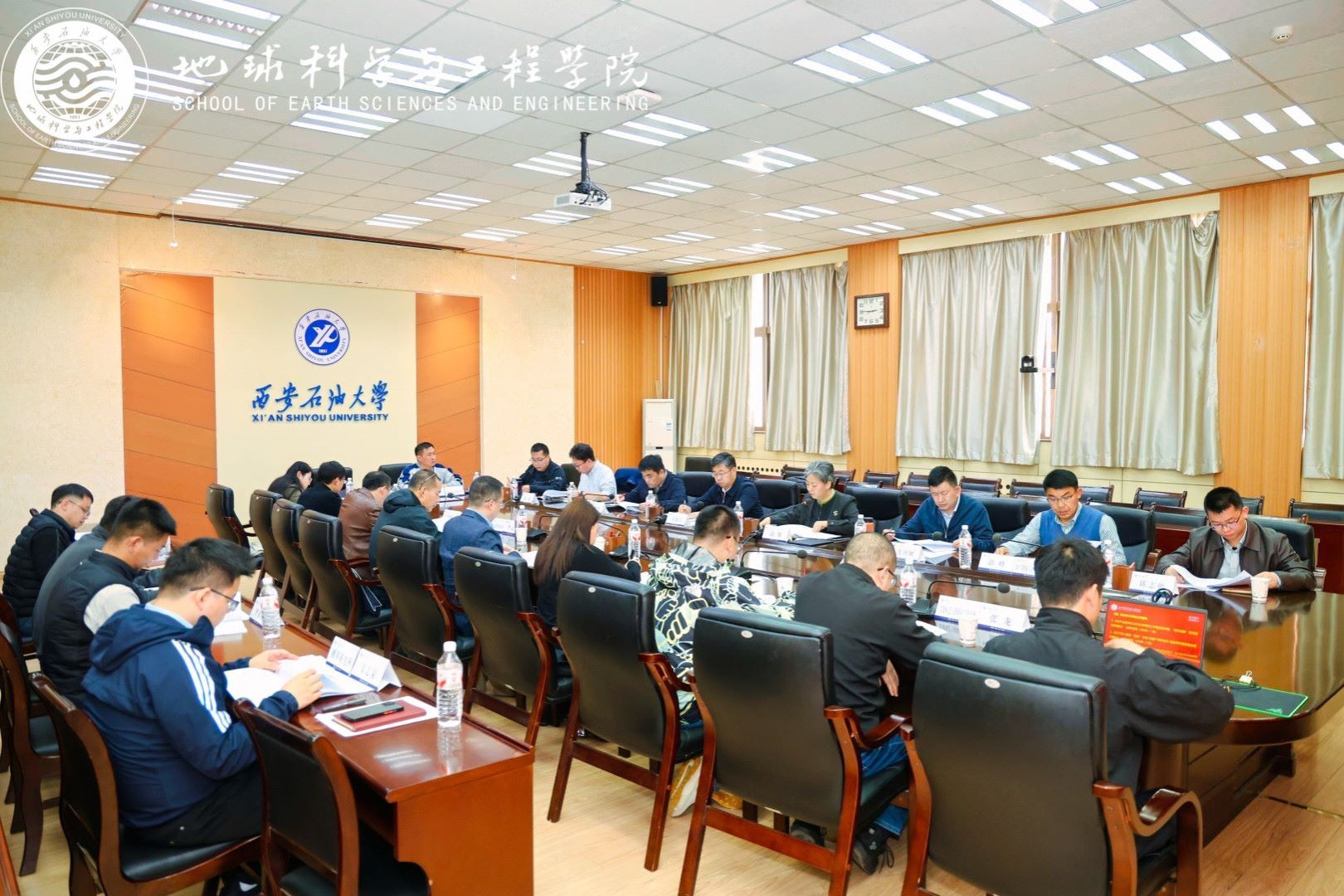 为贯彻落实学校“体系重塑年、质量跃升年、改革攻坚年”建设部署,深入推进树立和践行正确政绩观学习教育,4月2日,地球科学与工程学院“同上一堂课 聚力谱新篇”2026年工作会议暨党委理论学习中心组(扩大)学习会在雁塔校区举行。会议以“政绩观引领、改革路攻坚”为主线,围绕“党建赋能强根基、产教融合促跃升、体系重塑谋发展”主题,通过专题思政课、专题党课、学院工作报告、中心组学习研讨及警示教育等环节,凝聚发展共识,明确攻坚方向。校长王进富到会指导并为与会人员讲授专题思政课和党课。学院党委书记高黎主持会议,学院领导班子成员、全体教职工及研究生代表参加会议。