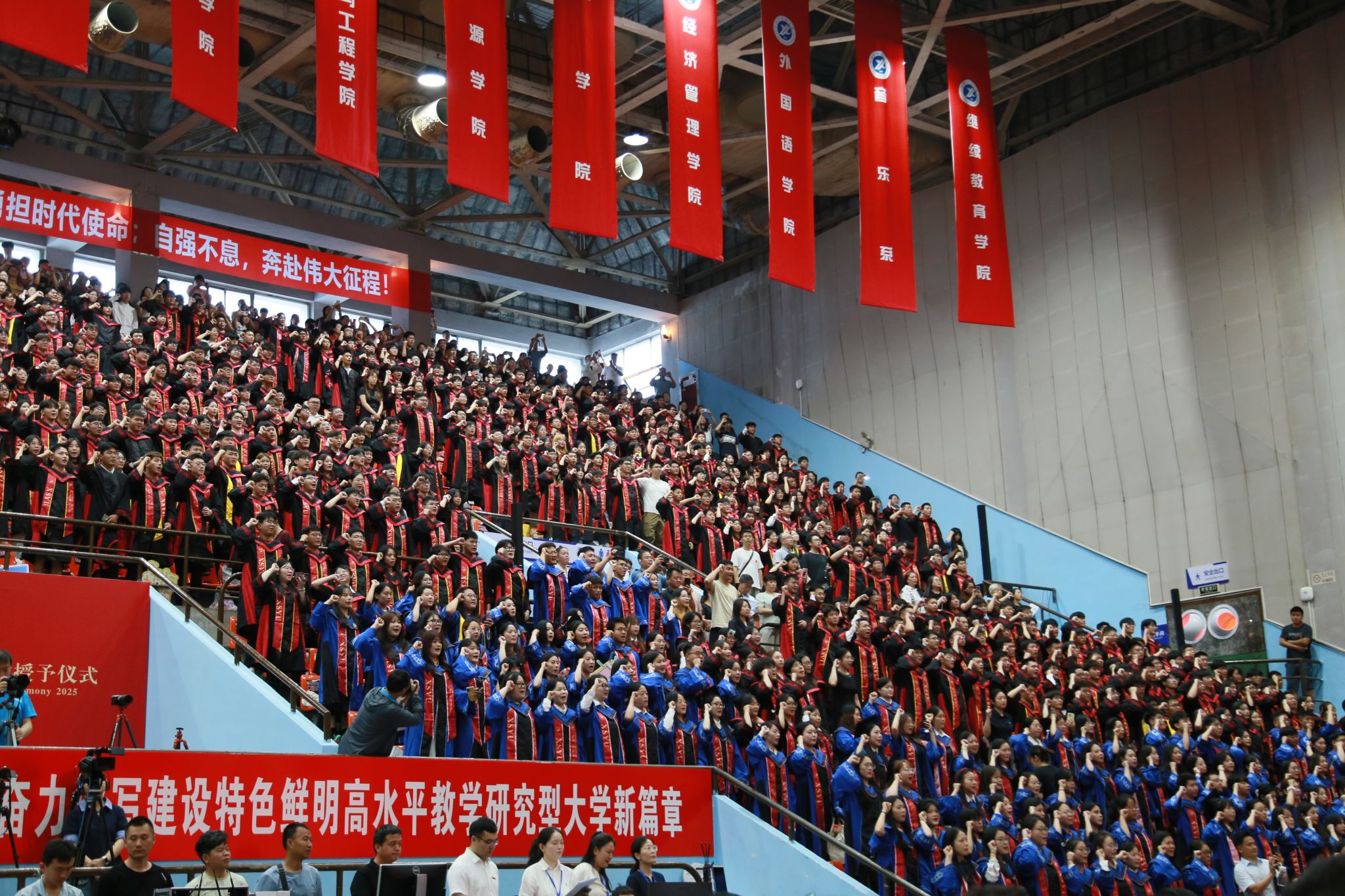 青春作伴,踏歌而行。外国语学院翻译2101班本科生冯欣雨、化学化工学院化学工程与技术2022级硕士研究生薛乐、材料科学与工程学院塔吉克斯坦籍国际学生李定代表毕业生发言,深情回顾求学时光,向学校致以最诚挚的谢意与最美好的祝愿。