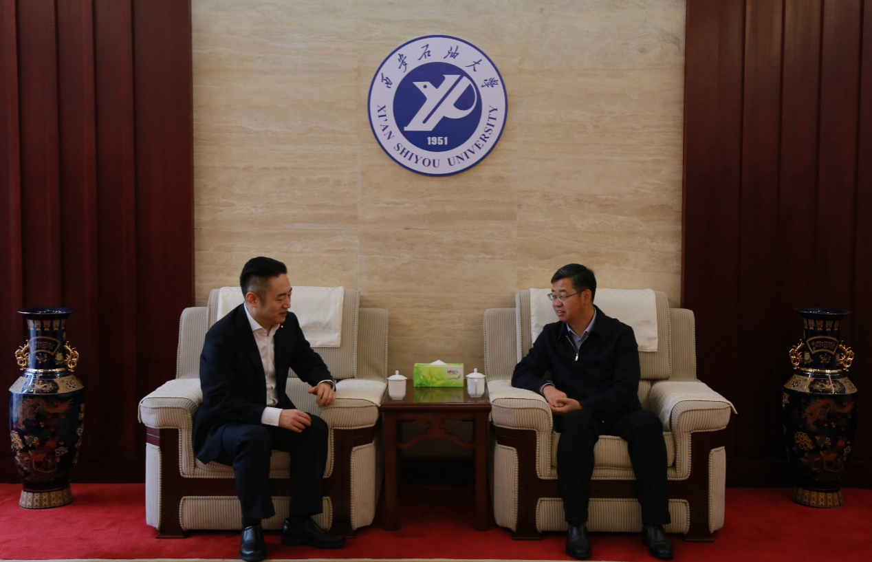 座谈前,校长王进富在鄠邑校区贵宾室与刘勤志进行了亲切会谈。他指出,校友是学校的核心资源与宝贵财富,更是学校发展的底气、骄傲和战略支撑。学校第三次党代会提出了“构建校友终身命运共同体”的发展理念,目前已连续举办2届“校友秩年返校共商高质量发展大会”,学校通过优化内部机构强化校友工作,进一步凸显校友在学校事业发展中的不可替代作用。他强调,近年来学校始终坚持“开放办学、智慧办学、服务办学”理念,紧扣行业产业需求,深化产教融合、聚焦企业需求、发挥学校优势,围绕人才培养、科学研究和社会服务三大核心职能,与行业企业开展全方位、深层次合作。他希望,双方能够聚焦合作契合点、着力点与共振点,进一步深化合作内容、创新合作形式,推进科研、人才培养及平台建设,在更宽领域、更高水平实现互惠共赢,助力国家能源战略实施与区域经济社会发展。