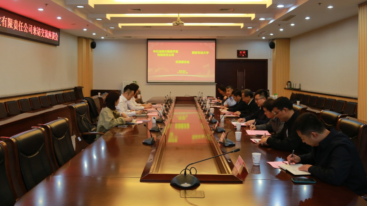 南方石油勘探开发有限责任公司办公室(党委办公室)、人力资源部(党委组织部),我校党委组织部、党委宣传部、工会、校友工作与合作交流处、石油工程学院、经济管理学院、音乐系相关负责同志陪同交流。