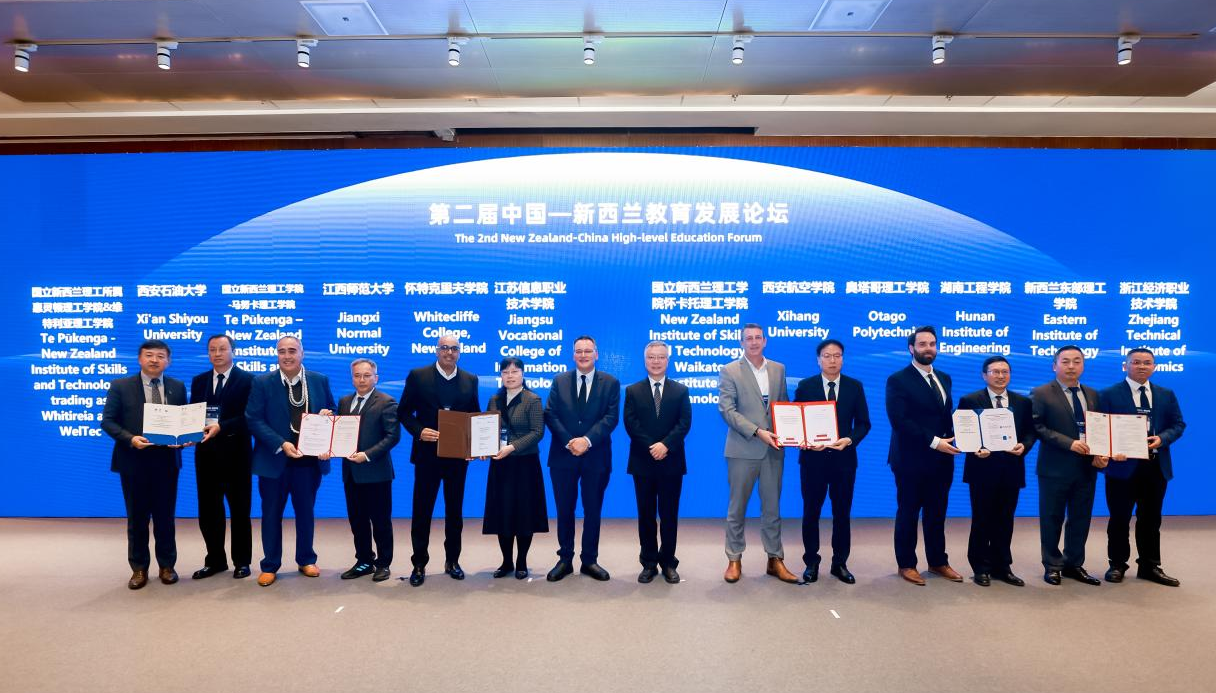 10月30日下午,我校副校长张荣军受邀参加第二届中国—新西兰教育发展论坛,并与新方院校代表在中国教育部副部长任友群及新西兰大学教育部长,科学、创新与技术部长沙恩·雷蒂见证下,展示了我校与国立新西兰理工所属维特利亚理工学院和惠灵顿理工学院设立硕士层次中外合作办学项目的合作意向书。