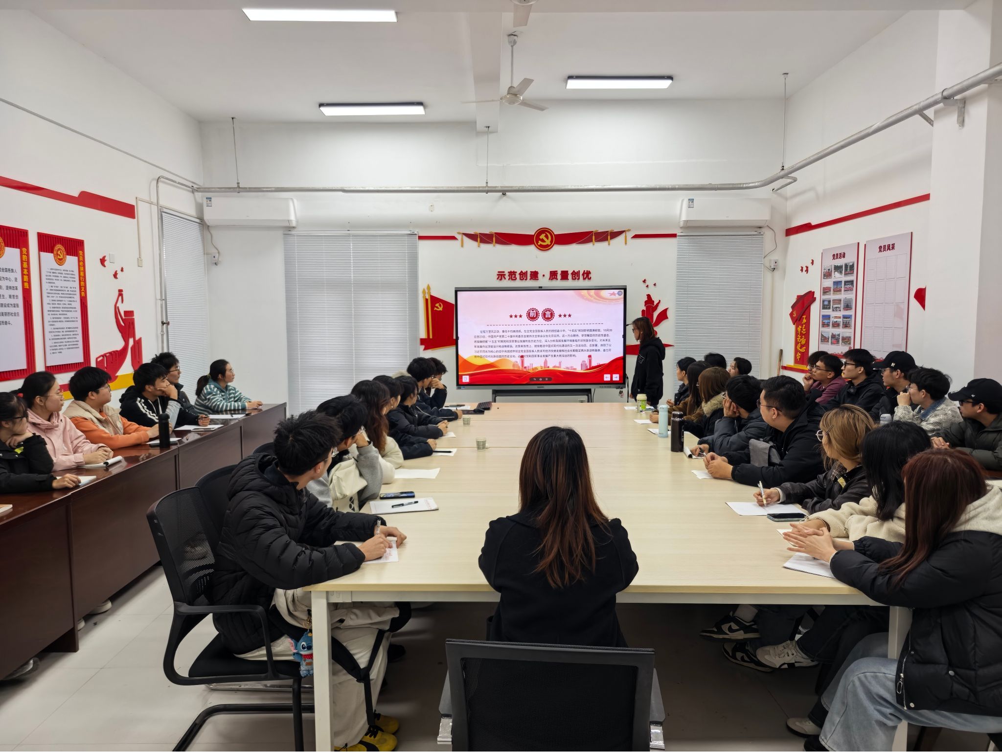 外国语学院召开“不忘初心、牢记使命”学习党的二十届四中全会精神主题团日活动。团支书通过PPT,从全会核心议程、“十五五”规划部署及青年使命三个维度进行了系统解读,并巧妙结合外语专业特色,指出在“网络强国”“文化繁荣”等国家任务中,多语种服务、人工智能翻译、跨文化传播等领域是外语人的用武之地。在互动研讨中,翻译专业同学分享了在“中国典籍外译”项目中如何更好地传递中国文化智慧的思考;学习委员则从“统筹发展和安全”角度,阐述了坚守“学术诚信”底线的重要性。活动有效引导同学们将国家大政方针与专业学习、学术研究紧密结合,深化了对外语人作为文化交流桥梁、学术安全守护者角色的认识,凝聚了“强国有我”的共识与担当。