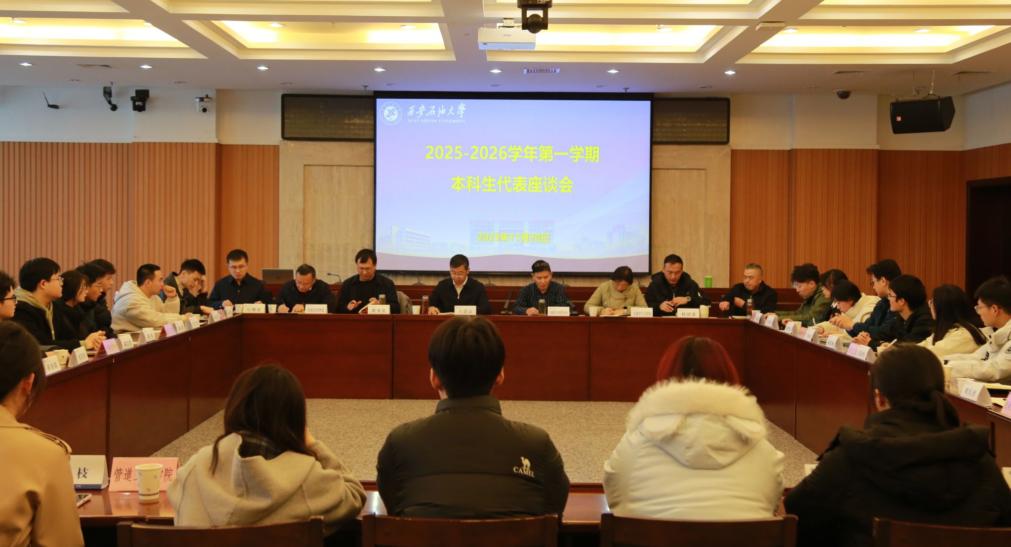11月20日上午,我校在鄠邑校区第一会议室召开2025-2026学年第一学期本科生代表座谈会。校长王进富出席座谈会。学生工作部(处)、团委、教务处、实验室管理处、后勤处、高教研究与评估督导中心等单位负责人,以及来自各院(系)的31名本科生代表参加座谈。