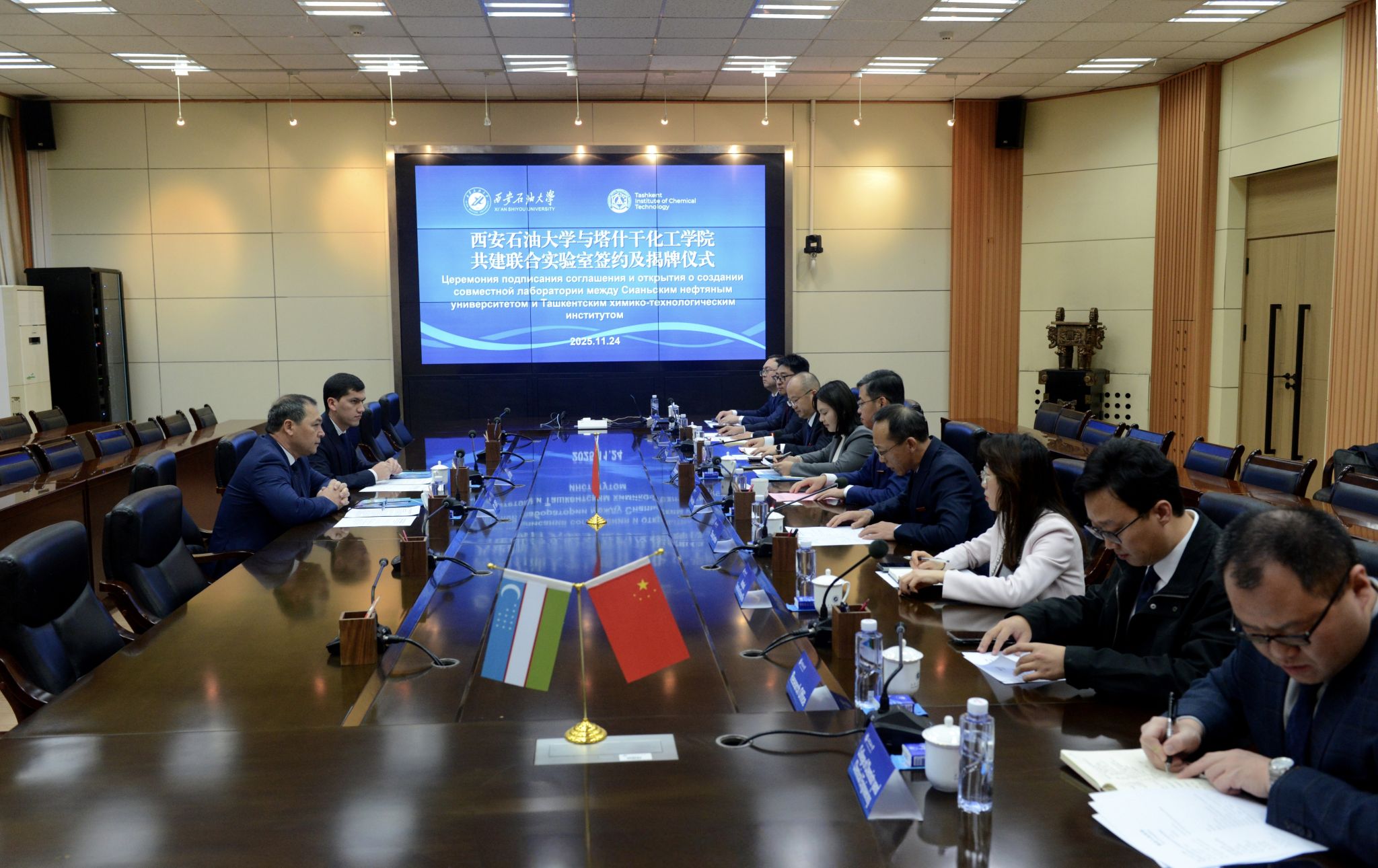 会上,两校校长共同签署《西安石油大学与塔什干化工学院共建资源利用与环境保护联合实验室协议》,并现场为“资源利用与环境保护联合实验室”揭牌。