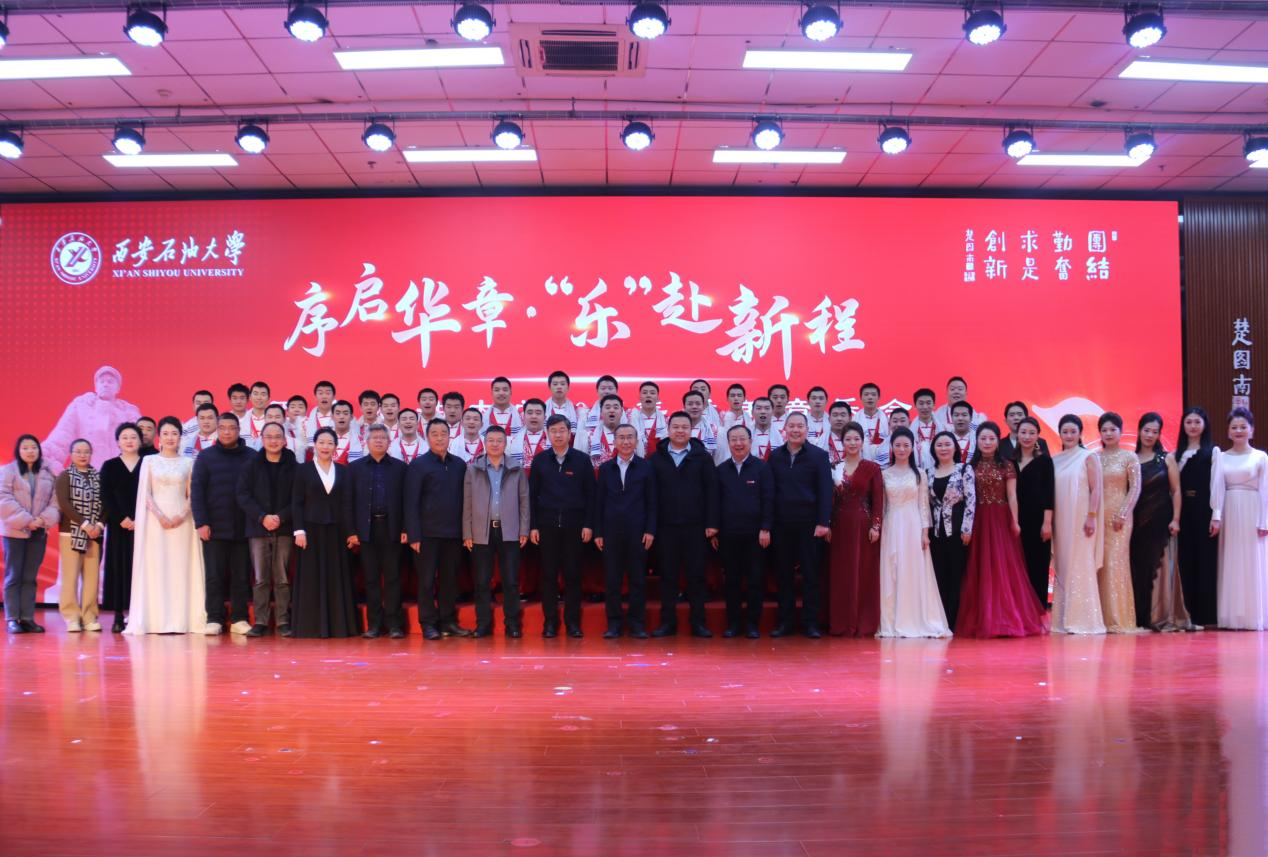 12月31日下午,序启华章·“乐”赴新程—西安石油大学2026年新年音乐会在鄠邑校区腾辉大学生活动中心举办。校领导王进富、张木、程永清、张骁勇、赵健、种宇宏,校友代表,离退休教职工代表,高层次人才代表,民主党派、无党派人士代表,学校各单位处科级干部代表及师生代表等500余人齐聚一堂,共迎新年。