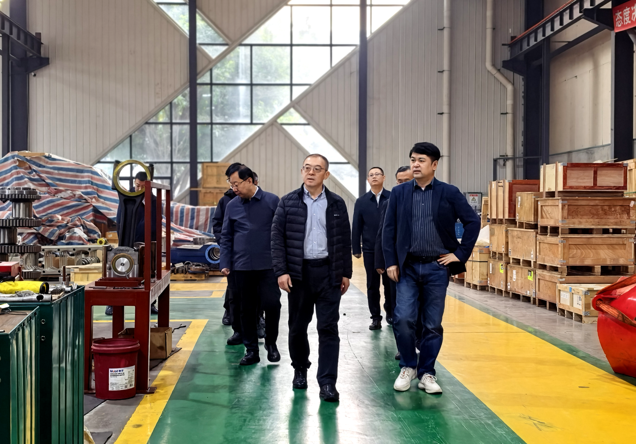 座谈结束后,常江一行实地参观了公司生产车间与研发检测中心,深入了解企业生产工艺、技术研发及质量管控等情况。