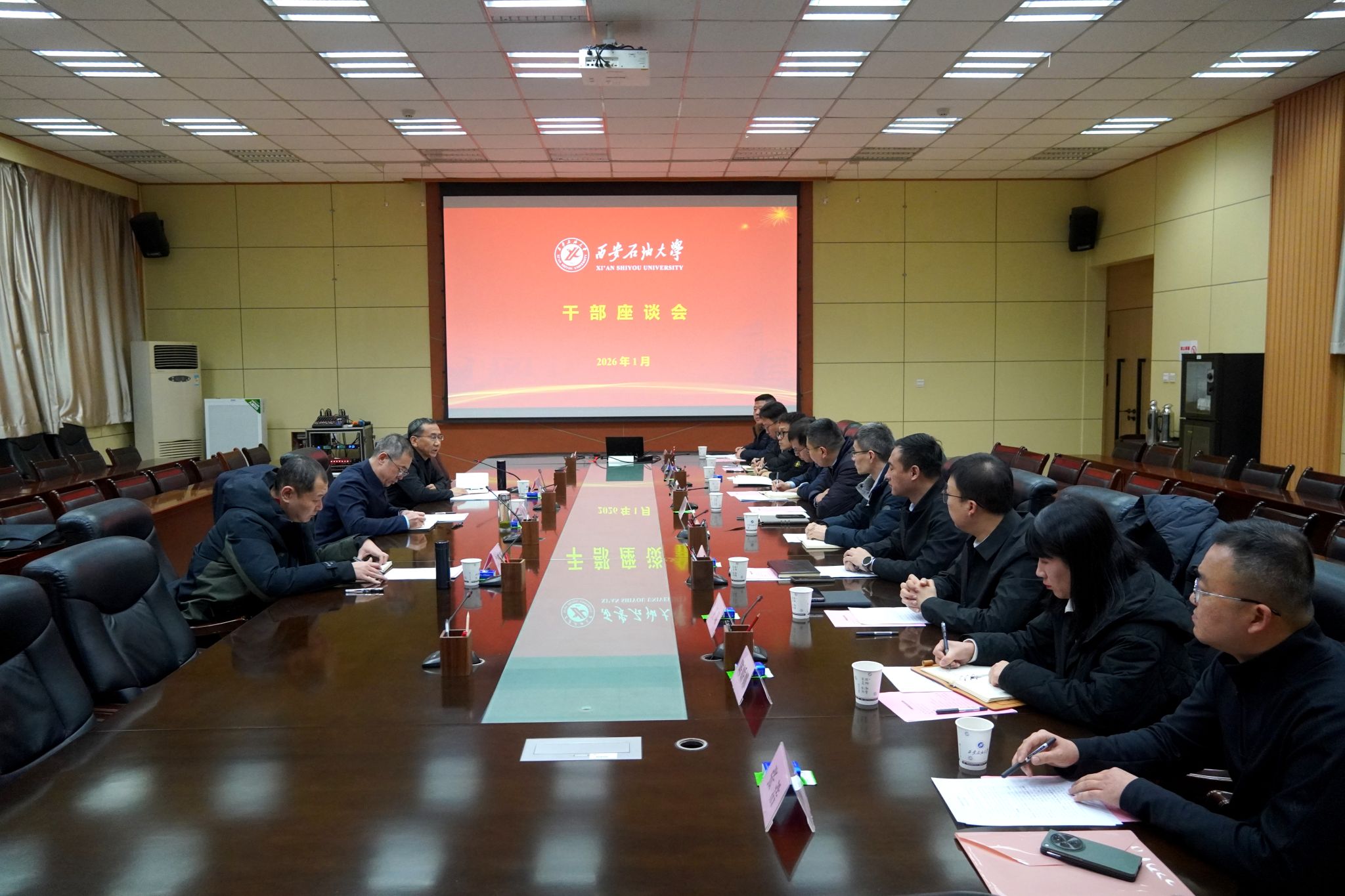 1月21日上午,学校在雁塔校区第一会议室召开干部座谈会。校党委书记常江出席会议并讲话,校党委副书记张木主持会议,党委组织部负责人及10名来自不同职能部门、院(系)的干部代表参会。