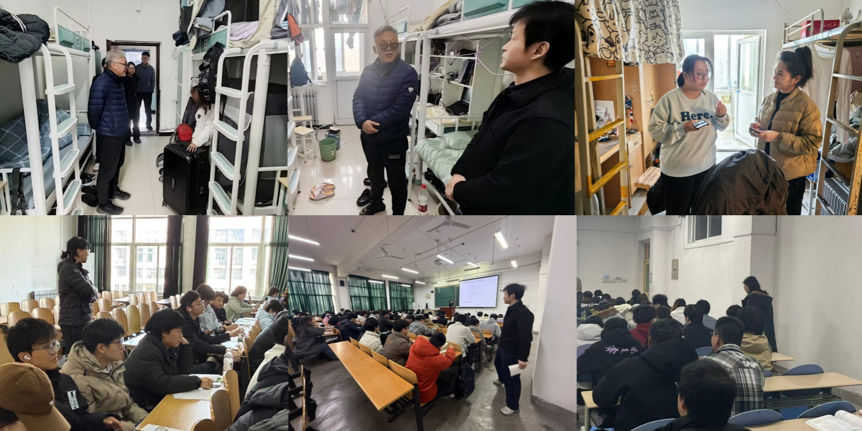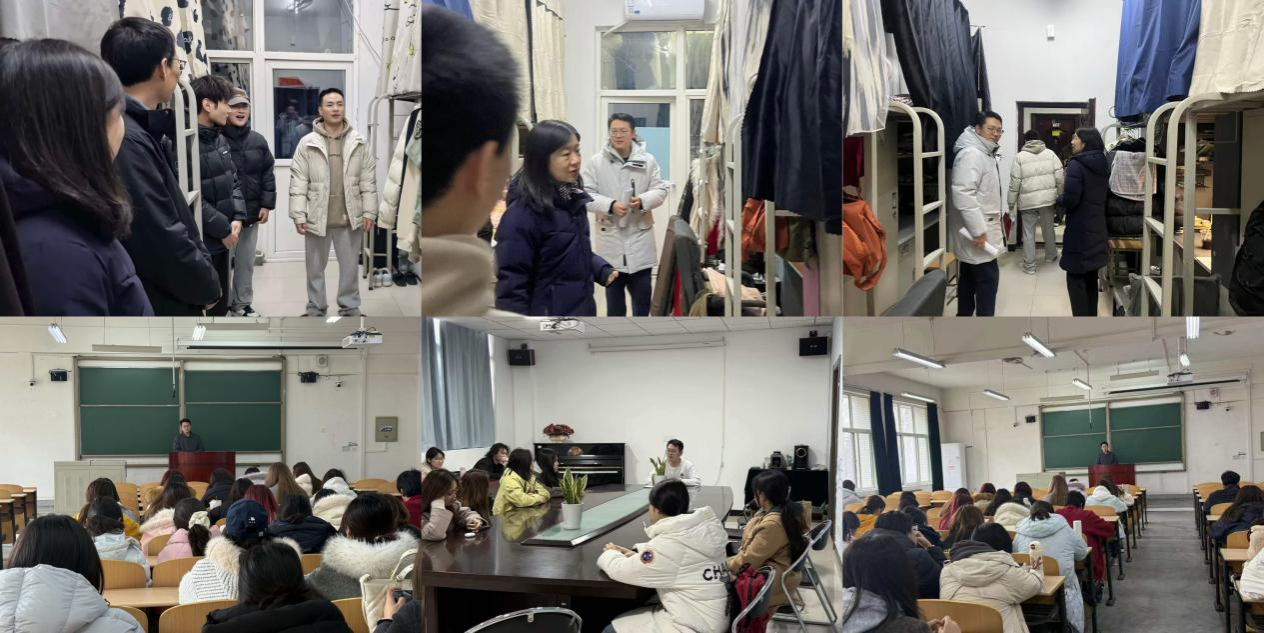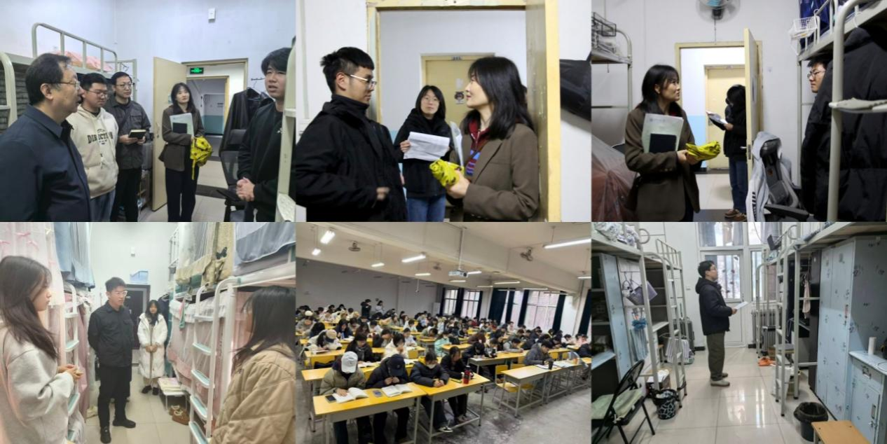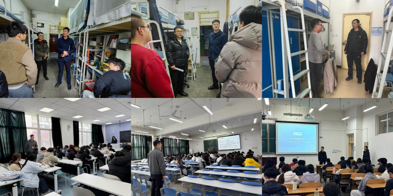 理学院于3月2日至5日开展全覆盖走访检查工作,党委书记席利哲、院长折延宏、党委副书记杨富民带领全体辅导员和部分班主任分批次深入学生宿舍,了解返校适应和学习生活需求,围绕专业认知、职业规划交流座谈,收集意见建议并现场解答困惑。院领导带队深入课堂,察学情、访状态,实现首周全部课程检查全覆盖。学院还以班会和年级大会形式为全体本科生开展“开学第一课”,引导学生端正学习态度、加强学风建设,重点强调预防电信诈骗、加强网络文明教育,守护校园安全稳定。