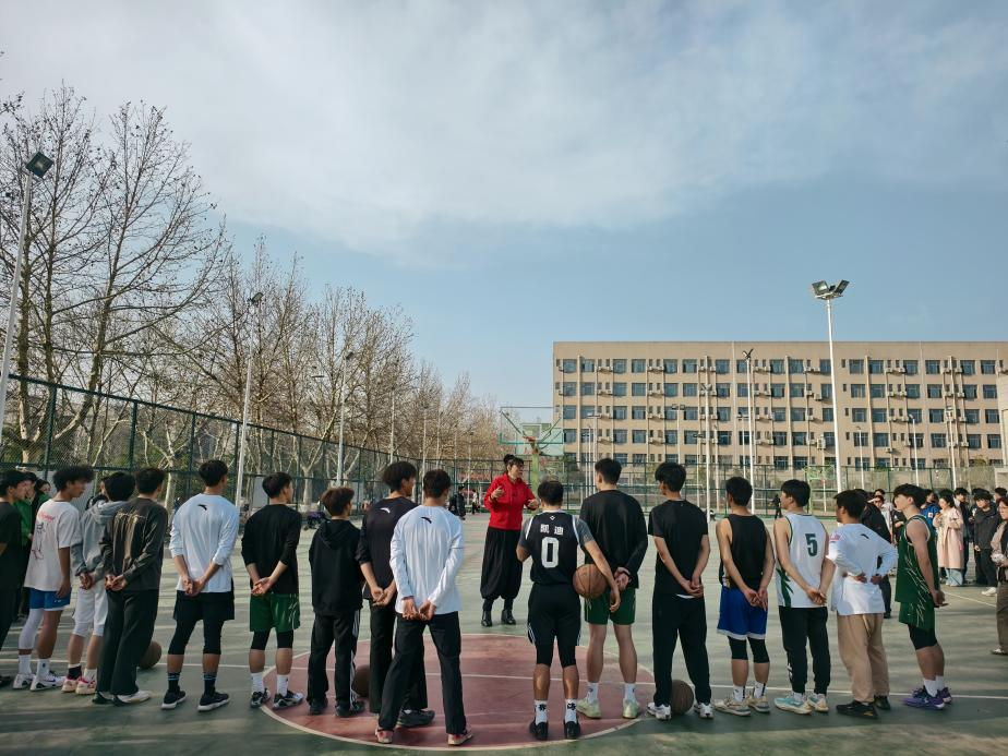 参观结束后,郑海霞前往东体育场篮球场,现场指导我校篮球队训练,并与队员们面对面交流。她结合职业赛场实战经验,分享训练技巧与比赛心得,叮嘱队员们夯实基本功、强化团队协作,在训练与比赛中团结奋进、勇攀高峰。