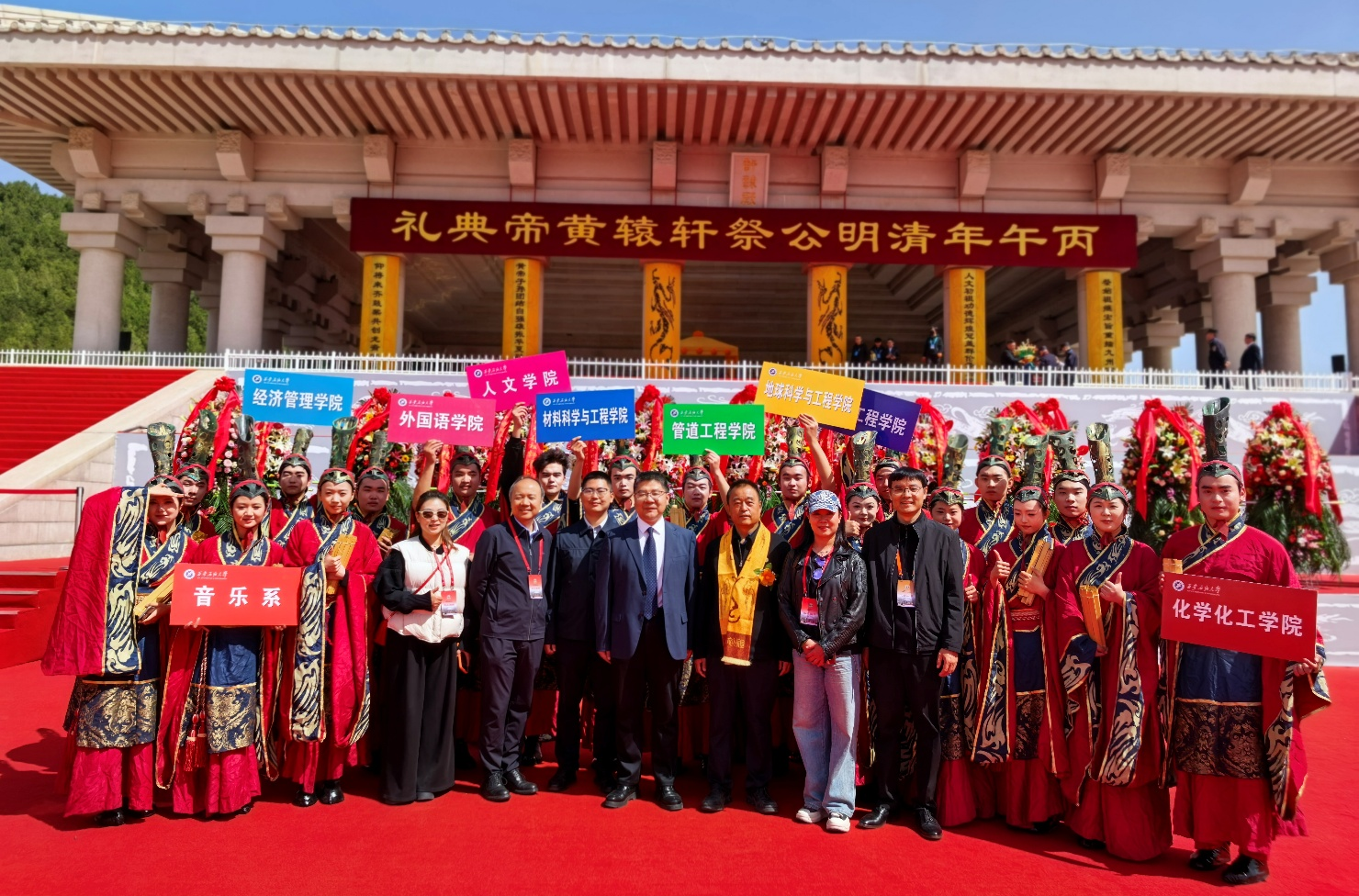 4月5日上午,丙午(2026)年清明公祭轩辕黄帝典礼在陕西省延安市黄陵县黄帝陵隆重举行。本次典礼由陕西省人民政府、国务院台湾事务办公室、国务院侨务办公室、中华全国归国华侨联合会共同主办,以“铸牢中华民族共同体意识 奋进中国式现代化新征程”为主题,海内外中华儿女、各界代表齐聚桥山,共缅人文初祖,共续民族根脉。我校24名师生圆满完成公祭演出任务,现场实况通过央视国际频道、陕西卫视、福建海峡卫视、凤凰卫视、台湾中视等媒体转播,向全球华夏儿女展现了西石大学子的青春风采与责任担当。学校党委副书记程永清出席公祭活动。