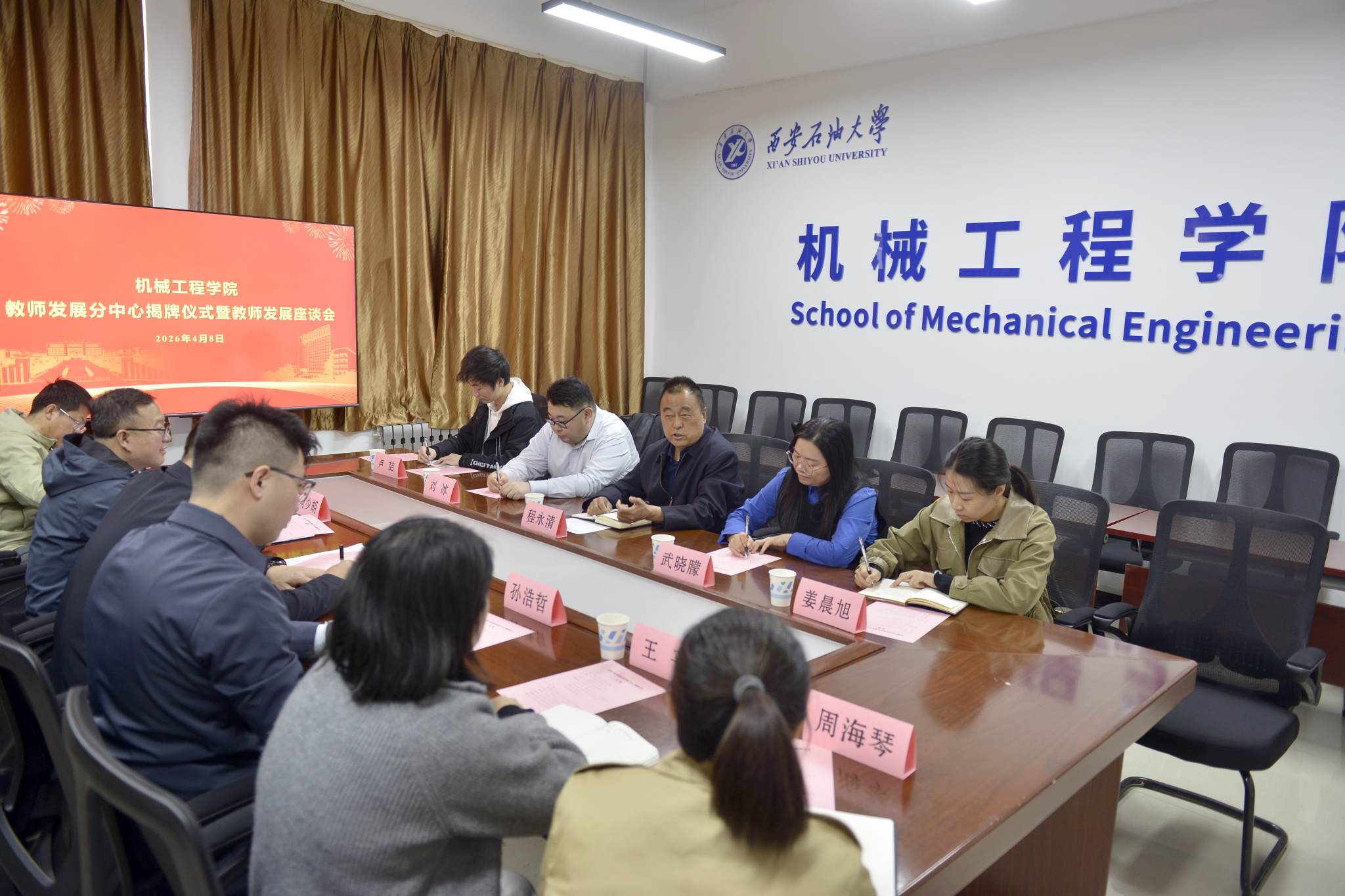 4月8日上午,教师发展中心机械工程学院分中心揭牌仪式暨教师发展座谈会在鄠邑校区天工楼成功举办。校党委副书记程永清出席活动并讲话。教师工作部负责人、机械工程学院主要领导及教师代表参加活动。活动由机械工程学院党委书记孟开元主持。
