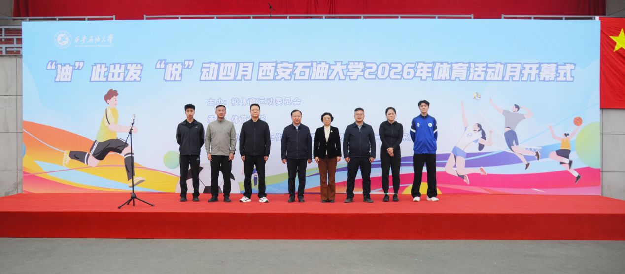 4月10日,我校在鄠邑校区东体育场举行“油”此出发、“悦”动四月——西安石油大学2026年体育活动月开幕式。副校长种宇宏出席开幕式。党委学生工作部、团委、教务处、体育学院相关负责人,各学院学生代表、运动员代表、裁判员代表及全体工作人员1500余人参加开幕式,开幕式由体育学院院长李寿邦主持。
