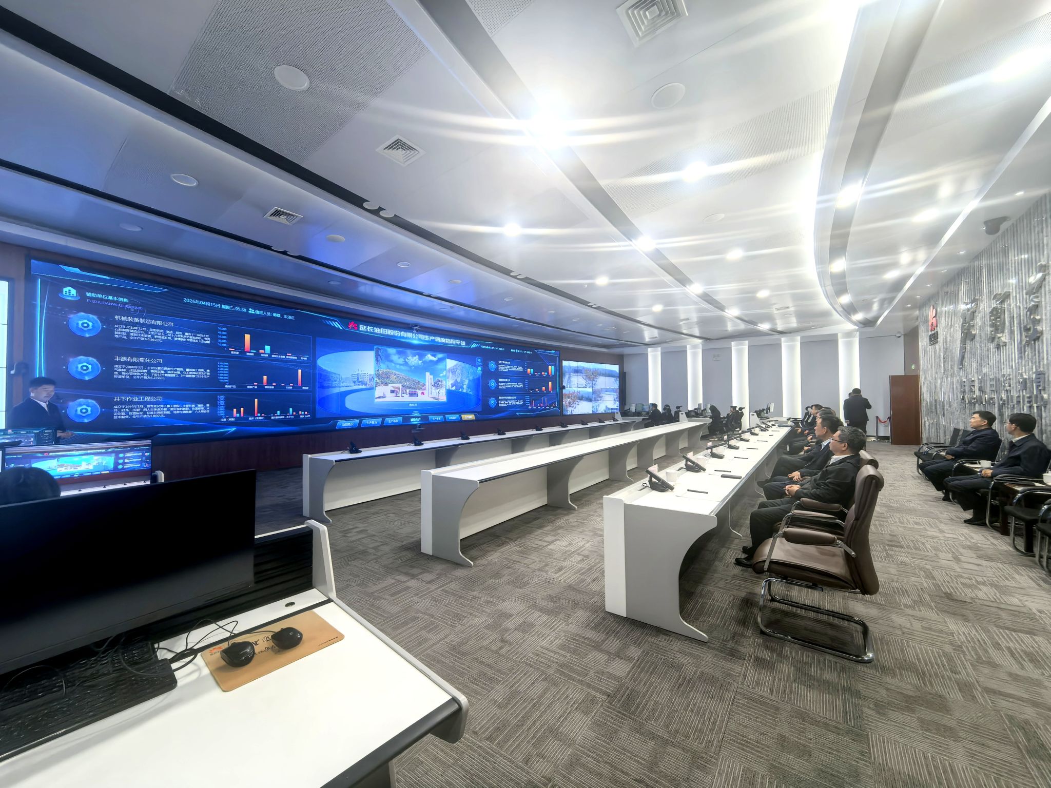 走访期间,王进富一行参观了延长油田生产调动运行指挥中心和国家重点研发计划CCUS项目化38井区注气站,观看了延长油田宣传片及油田生产调度指挥平台,深入了解了延长油田数字化、智慧化油田建设成果以及CCUS发展历程、工艺流程等情况。