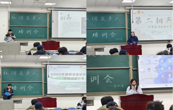 11月18日晚,培训第四讲特邀西安交通大学科幻社,西安建筑科技大学补天环境保护社、第二相声社,我校追梦啦啦队协会等负责人主讲。西安交通大学科幻社分享了特色活动策划经验,展现科幻文化与社团创新的融合路径。西安建筑科技大学补天环境保护社团聚焦公益实践,探讨环保类社团的活动开展与社会价值传播;第二相声社以“传承曲艺文化”为主题,分享了传统艺术社团的运营心得,彰显了传统文化在校园中的生机与活力。我校追梦啦啦队协会结合实际案例,从活动筹备、赛事组织等方面,进行了全面而深入的分享。