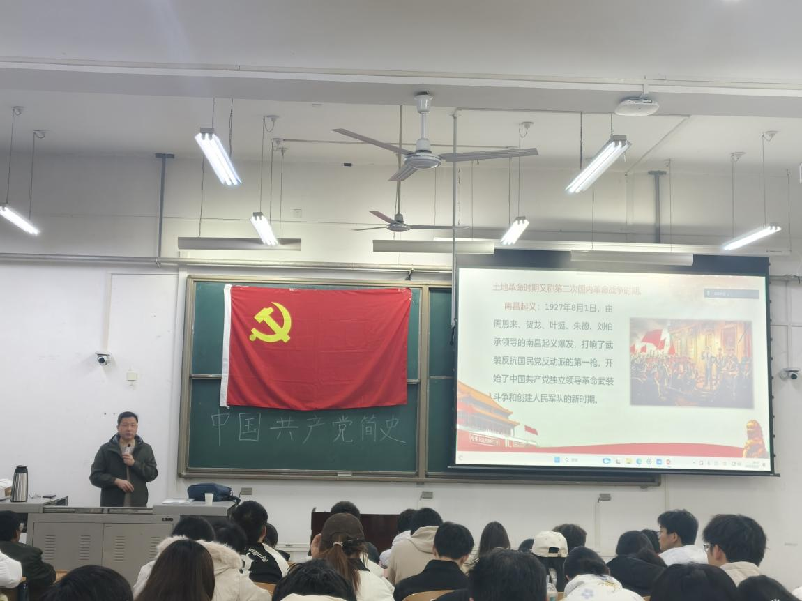 机械工程学院正处级组织员蔡建文以《中国共产党简史》为题,带领学员们重温了中国共产党的辉煌历史,生动讲述了党在不同历史时期的奋斗历程和取得的辉煌成就。