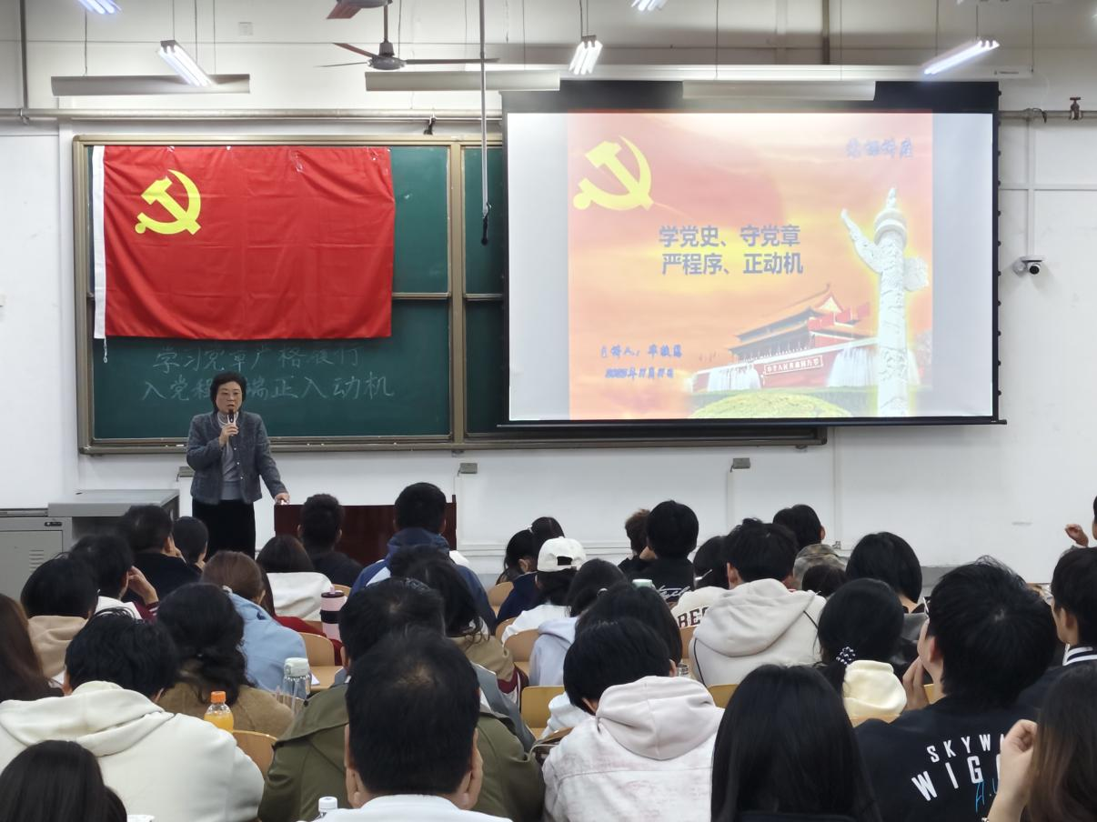 计算机学院党委书记庞秉谦以“《中国共产党发展党员工作细则》解读”为题,深入分析了大学生党员发展面临的形势与问题,明确了党员发展的标准、程序与工作要求,并对“大学生如何积极争取入党”提出了指导建议。
