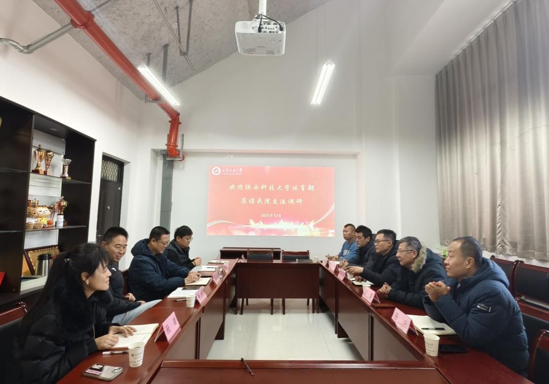 2025年12月19日上午,陕西科技大学体育部直属党支部书记陈李斌、主任王震一行5人来我校体育学院开展调研交流活动。双方围绕大学体育教学改革、科研创新与实践、体育场馆运营管理等议题进行了深入探讨,通过经验共享与思想碰撞,为新时代高校体育工作的高质量发展注入新动能。体育学院党政领导刘小波、李寿邦、阮凌及科室负责同志参加交流会,会议由李寿邦主持。