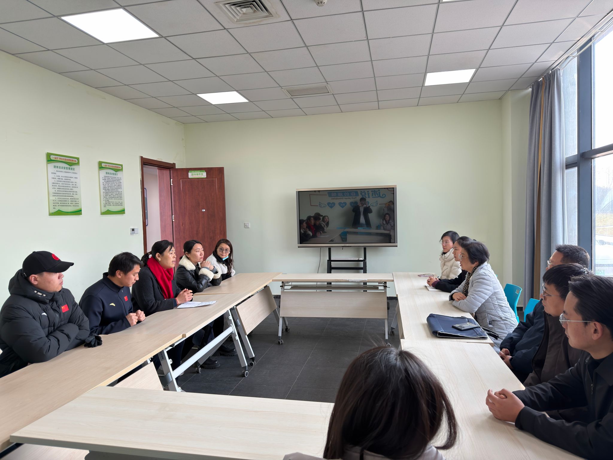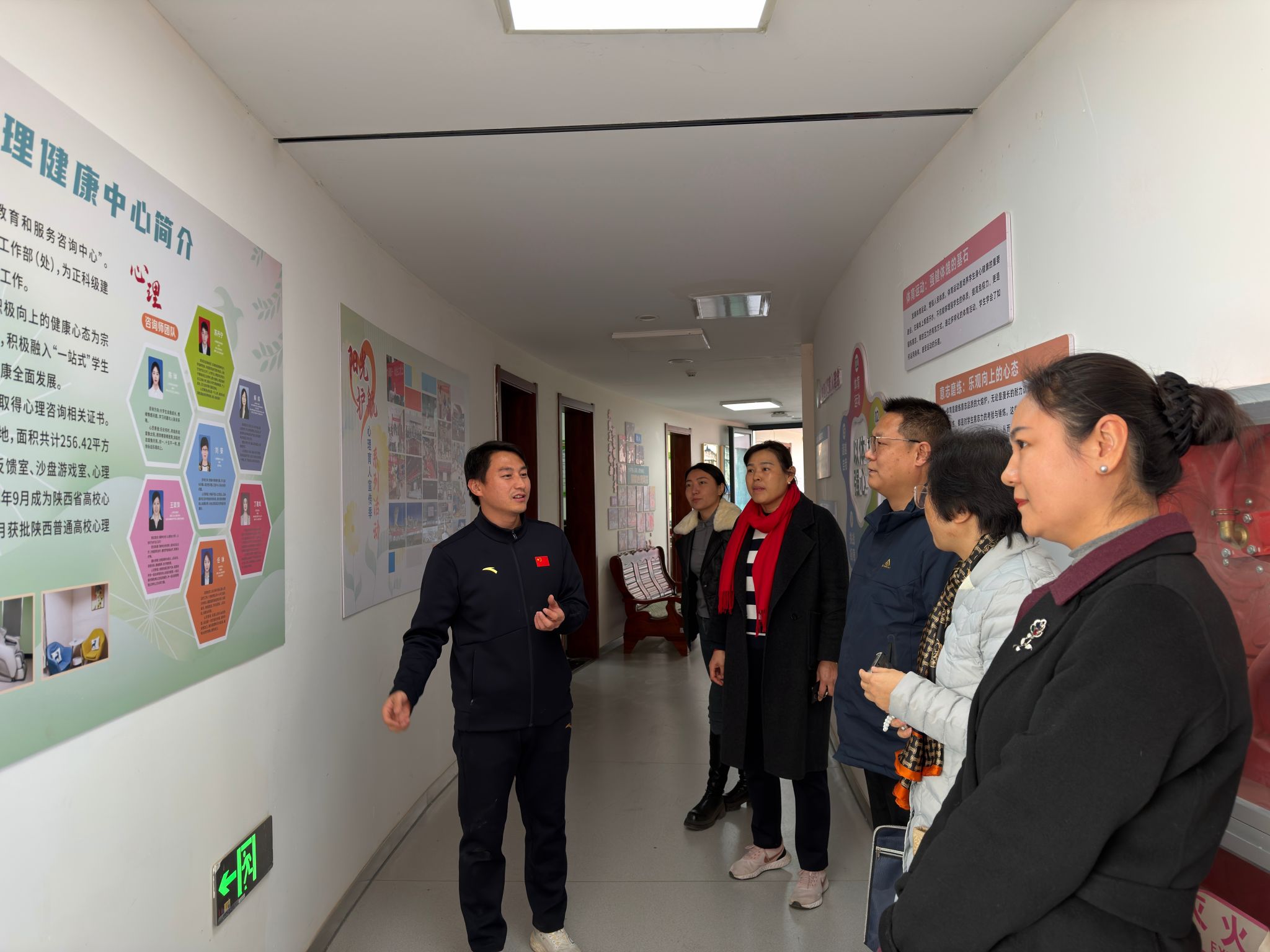在西安体育学院学工同仁的陪同下,我校一行首先参观了“一站式”学生社区心理健康教育中心。中心功能齐全、环境温馨,将心理健康教育、咨询干预、团体活动、放松减压有机融合于学生生活区域,实现了心理育人工作的前置与下沉。