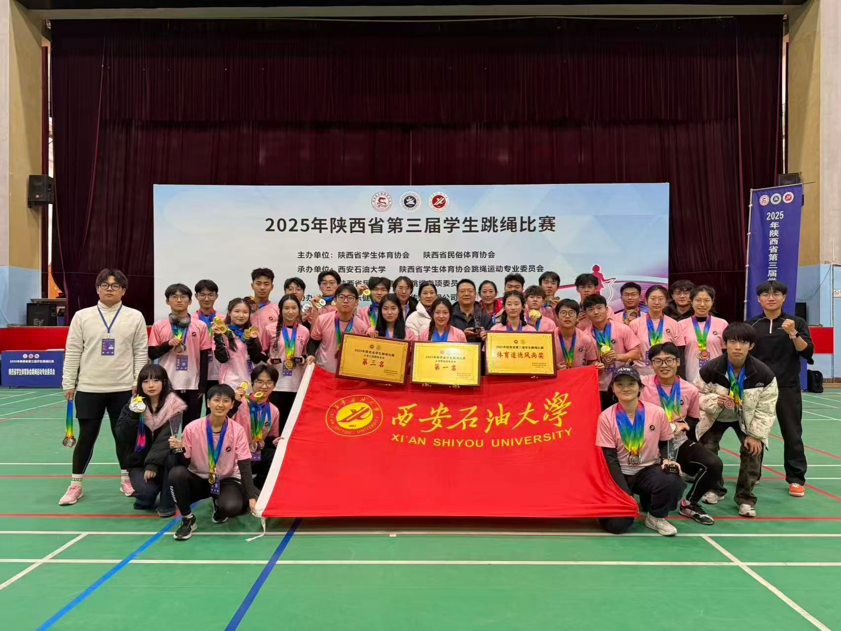 12月20日-21日,时维仲冬,盛会襄举。三秦学子负凌云之志、八方绳友怀赤子之心,荟萃西安石油大学雁塔校区,共赴2025年陕西省第三届学生跳绳比赛。赛事由陕西省学生体育协会、陕西省民俗体育协会联合主办,西安石油大学、陕西省学生体育协会跳绳运动专业委员会、陕西省民俗体育协会跳绳专项委员会共同承办,陕西乐健鑫体育文化传播有限公司协办。开幕式上,我校体育学院院长李寿邦送上祝愿:“祝愿各年龄段祖国的花朵们茁壮成长,也祝愿本次比赛圆满成功,祝愿运动健儿取得优异的成绩。”同时,他表示:“西安石油大学将持续为陕西体育发展贡献西石大力量!”。