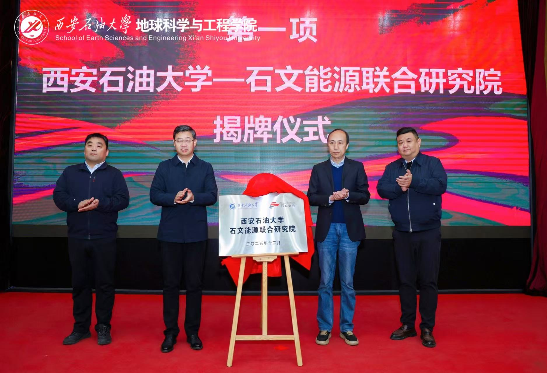 共建平台,驱动产教融合走深走实。在前期充分沟通及校友工作与合作交流处的协调推动下,学院与西安石文软件有限公司已完成战略合作协议签署。会上,王进富与张小会共同为“西安石油大学—石文能源联合研究院”揭牌。该研究院的成立,是学院探索“院为实体”改革、打造产学研用一体化协同创新平台的关键一步。