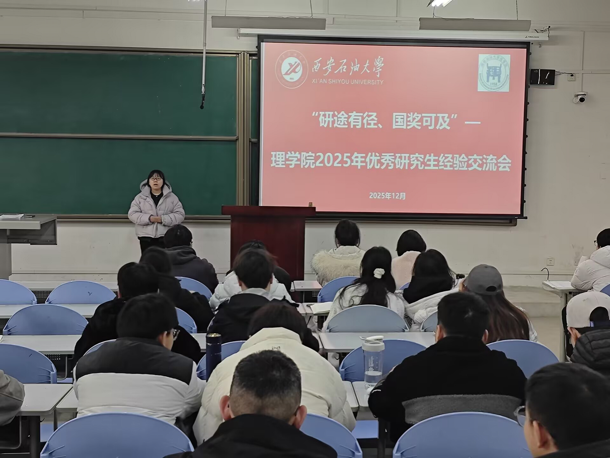按照学校研究生工作部关于2025年研究生学风建设暨学术文化活动月的安排部署,12月23日下午,理学院2025年优秀研究生经验交流会在鄠邑校区博览楼A124教室顺利举行。研2023级国家奖学金获得者王满银、李微、乌嘉诚,研2025级全体同学参加,研究生辅导员马小梅主持会议。