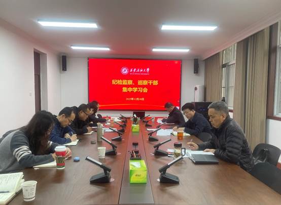 12月30日下午,纪检巡察干部2025年第27次集中学习会在邑校区办公楼第四会议室召开。校党委副书记、纪委书记、监察专员王辉强主持学习会。纪检监察机构、党委巡察工作办公室全体干部参加会议。