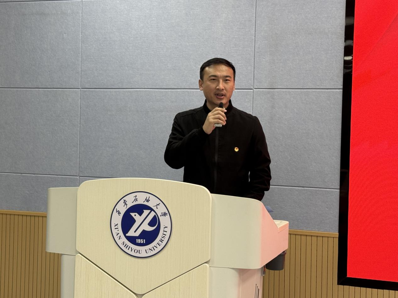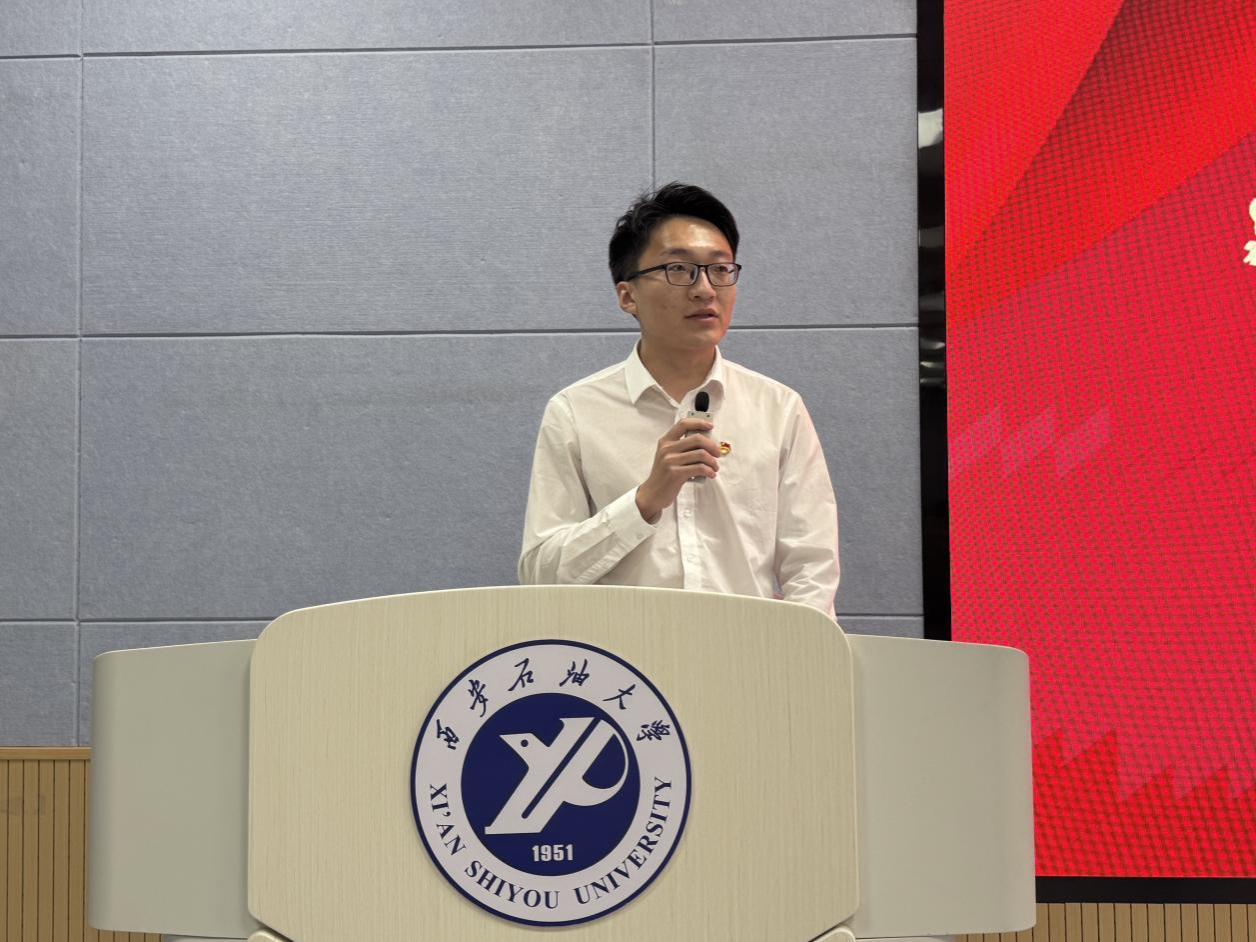 校研究生会执行主席张振陆致辞,他代表校研究生会向大会隆重召开表示最热烈的祝贺,希望学院研究生会与校研究生会携手并肩、同心同行,为学校学生组织高质量发展添砖加瓦。