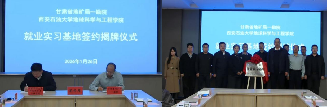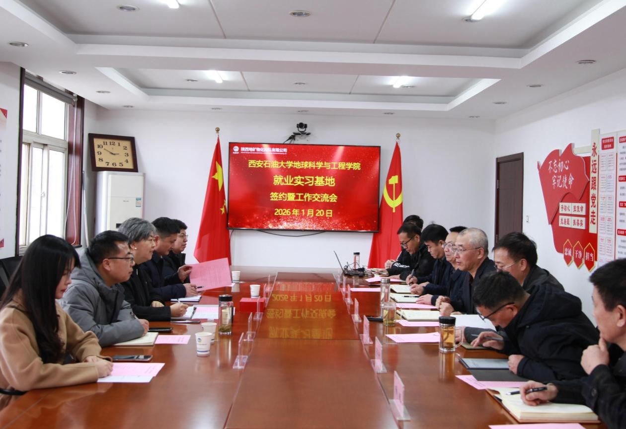 为深入贯彻学校关于促进毕业生高质量就业的决策部署,落实《西安石油大学多元协同育人工作实施方案》(西石大党生办〔2026〕7号)精神,将就业工作作为“一把手工程”抓实抓细,地球科学与工程学院党委高度重视、提前谋划,于1月20日至26日组织党政联合行动,由学院党委书记高黎、副书记董丙剑带队,院长助理冯旭亮,应用地球物理系副主任杨飞龙、副教授孟祥宁,学生工作办公室主任姜楠等组成专项工作组,利用寒假窗口期,赴陕西、甘肃两省开展访企拓岗促就业专项行动。工作组聚焦构建“大能源”就业格局,主动对接行业骨干单位,通过实地走访、座谈交流、签约揭牌等形式,深入了解地质勘探行业发展动态与人才需求,拓展毕业生就业渠道,并就校企协同育人、科研合作、就业实习基地共建等达成系列务实合作成果。