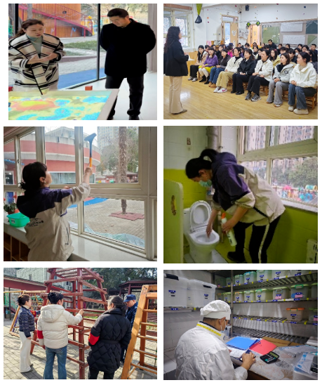 幼儿园精细做好返园准备,处领导实地督导检查。全园完成环境清扫消毒、班级环境创设,专业维保厨房设备、严选食材保障膳食安全,全面排查园舍、消防、活动器材等隐患,以温馨安全的环境迎接幼儿返园。