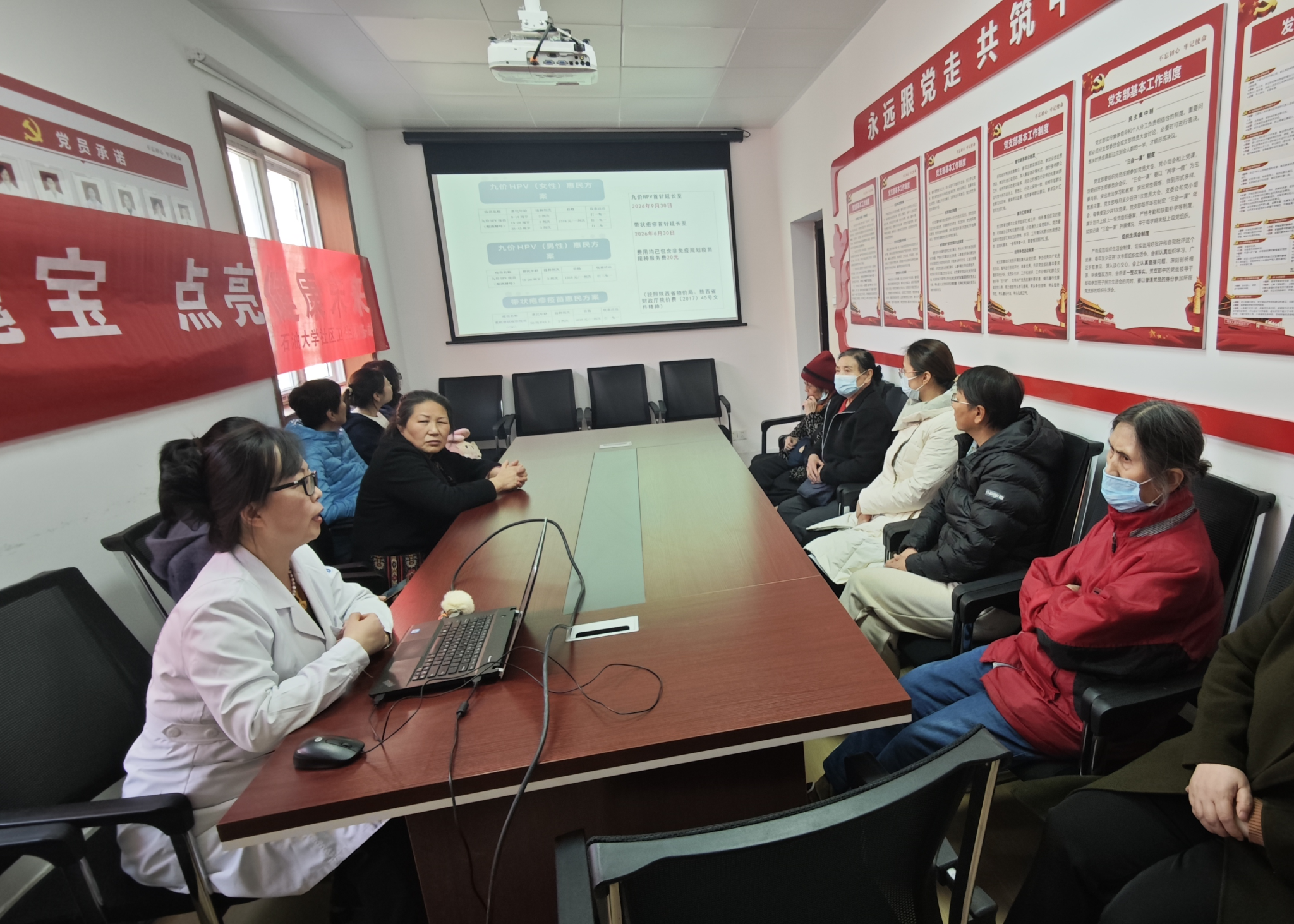 3月5日下午,雁塔校区健康专题讲座在医院二楼会议室举办。校医院副院长成怡敏围绕妇女常见病预防、育龄期保健、“两癌”筛查及更年期保健开展科普,积极倡导“早预防、早发现、早治疗”的健康理念。讲座现场,妇科、中医科专家同步为师生提供一对一答疑,并详细宣传妇儿保免费服务项目及疫苗惠民政策:九价HPV疫苗(酿酒酵母)面向9-26岁、35-45岁女性及16-26岁男性,首针须于2026年9月30日前完成接种;50岁及以上人群接种进口带状疱疹疫苗(CHO细胞)可享优惠,首针须于2026年6月30日前完成接种。
