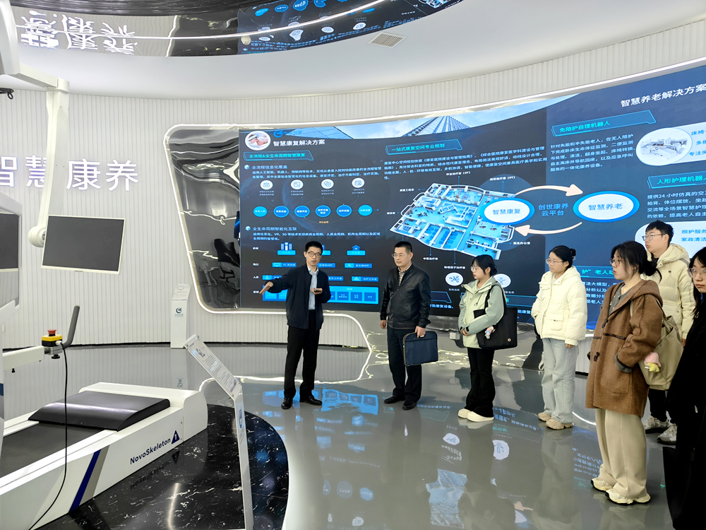 庞秉谦一行首先参观了公司展厅,详细了解了企业的发展历程、核心业务布局、主要产品研发及应用等情况。展厅内的各类机器人产品及技术成果,让师生们直观感受到企业的技术实力和行业发展前景,进一步拓宽了研究生学术研究与实践应用的视野。