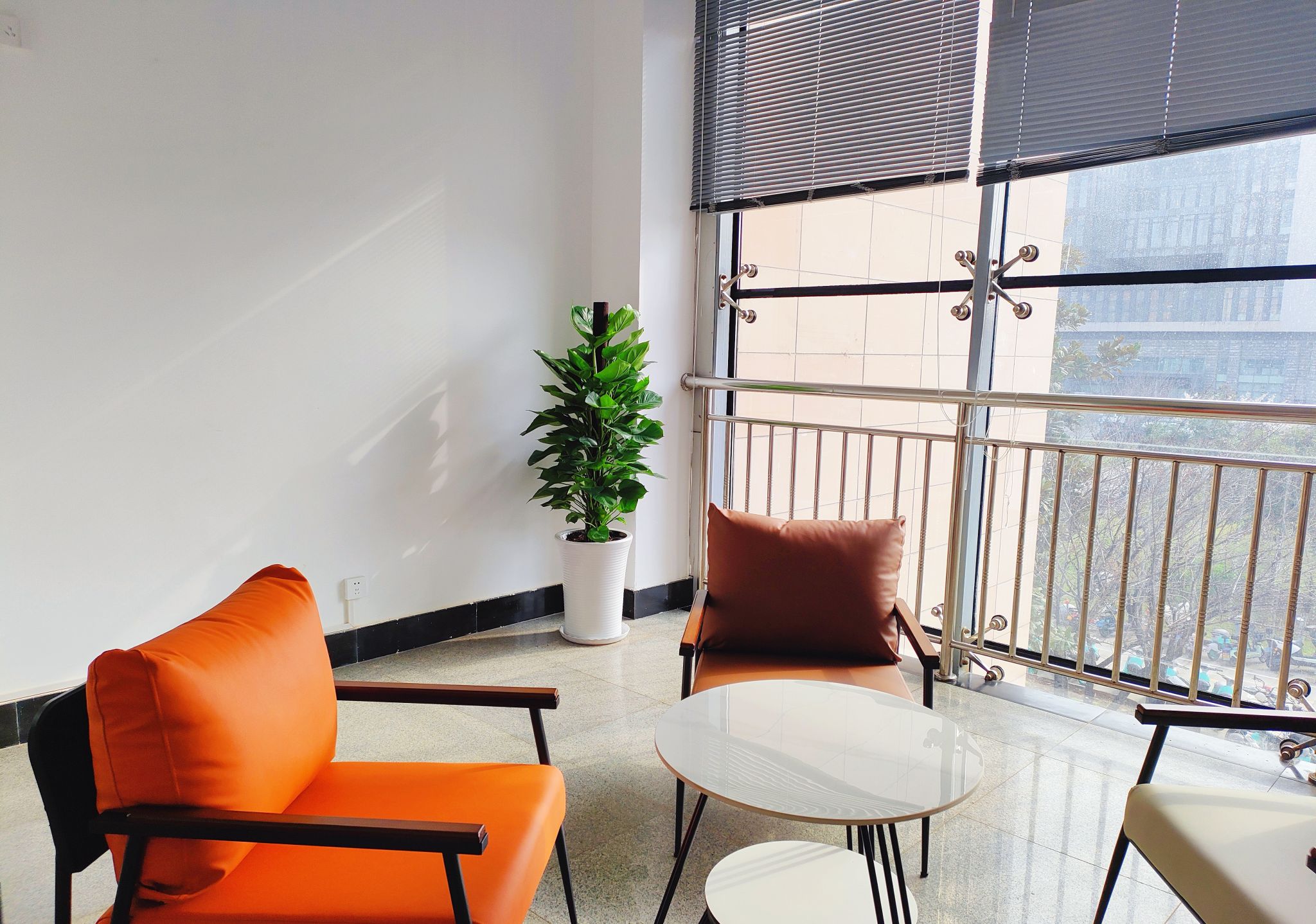 升级后的休息室,以柔软沙发构筑理想休憩角落,简约石板桌兼顾备课与交流需求,新增摇摇椅为课间时光注入轻松趣味,精心配置的绿植则带来盎然生机,在美化环境的同时舒缓工作压力,营造清新宜人的休憩氛围。