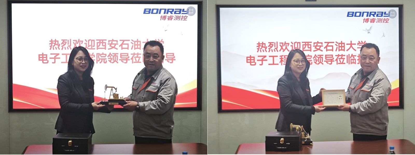 座谈结束后,潘娜向苏州博睿测控设备有限公司赠送纪念品,致谢校友企业对学院发展的支持。随后,在李伟华陪同下,潘娜一行实地参观了企业机械加工、电子装联、检测试验、仓储等核心车间,详细了解企业在工业自动化测控设备和执行器领域的最新技术成果与产业布局。