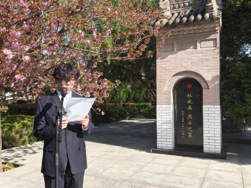 石油工程学院林世琦同学作为党员师生代表发言,他回顾了革命先辈们浴血奋战、无私奉献的峥嵘岁月,深刻阐述了传承英烈精神对新时代青年的重要意义。他结合青年学子身份,从坚定理想信念、勤学创新求索、践行社会主义核心价值观三方面,阐明了新时代青年传承英烈精神的行动方向,表达了青年一代勇担使命、为实现中华民族伟大复兴中国梦不懈奋斗的坚定决心。随后,全体师生党员面向鲜红党旗,高举右拳,重温入党誓词。铿锵有力的誓言回荡在陵园上空,彰显着党员们对党忠诚、为党的事业奋斗终身的初心。此次重温誓词,既是一次深刻的思想洗礼,也是一次精神淬炼,进一步坚定了全体党员的理想信念,激励大家不忘初心、勇担使命。