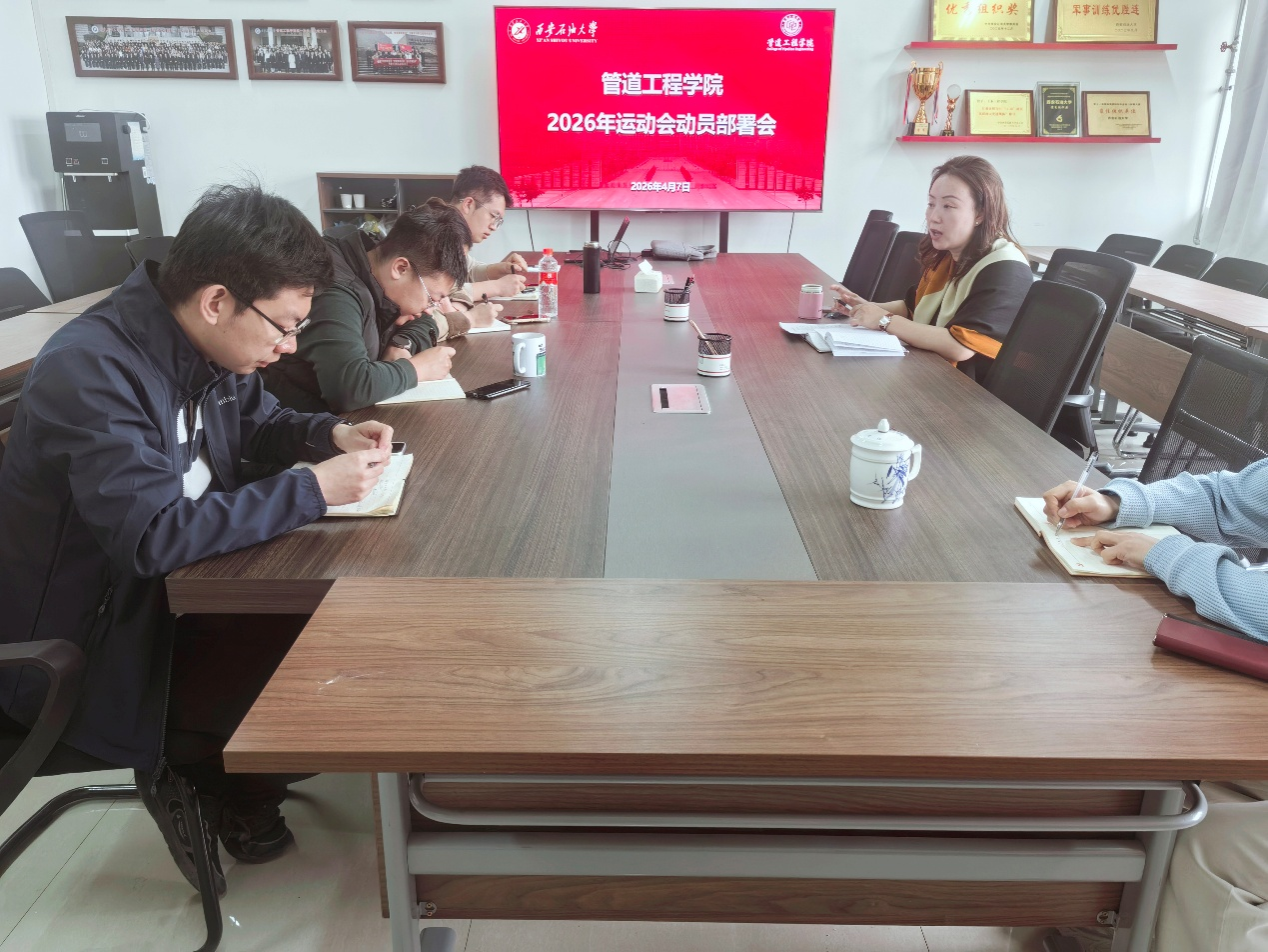 贾莉娜听取了大家的汇报后,对全体与会人员提出三点要求:一是提高认识,将校运动会作为加强学院文化建设、增强师生归属感的重要契机;二是精心组织,院工会、综合办、学生工作办公室及各系要协同联动,做好赛前训练和赛中服务,确保安全有序;三是营造氛围,通过多种形式宣传报道,展现管道工程学院师生团结拼搏、奋勇争先的精神风貌。