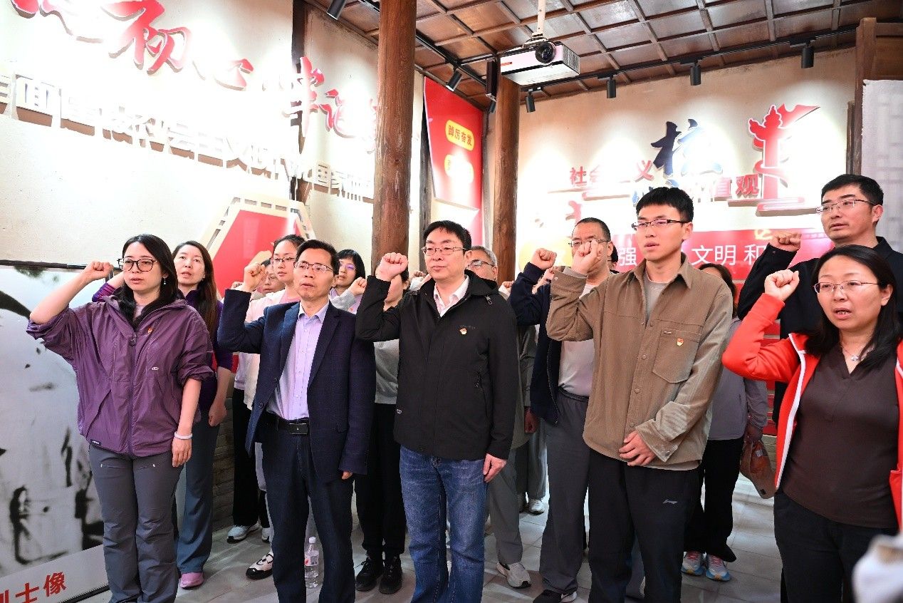 参观结束后,全体党员在包森故居内举行重温入党誓词仪式。由学院党委书记潘娜领誓,面对鲜红党旗,党员们高举右拳,庄严宣誓,表达了赓续红色血脉、坚守初心使命的坚定信念。