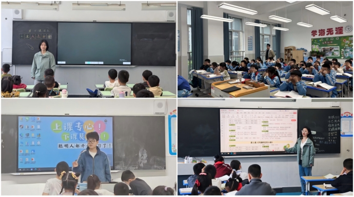 实习培训期间,支教团成员们严格遵守学校的各项规章制度,以饱满的热情和积极的态度投入到教育教学实践中。他们深入教学一线,认真观摩优秀教师的授课过程,仔细记录教学设计、课堂组织及师生互动技巧,悉心学习一线教师的教学方法与课堂管理经验。在指导教师“一对一”的悉心指导下,成员们精心打磨教案、反复演练教学流程,并陆续走上讲台,承担起小学语文、数学、英语、科学等多门课程的教学任务,成员们充分发挥专业特长与个人优势,将教育理论与实际教学相结合,展现出良好的教学潜力和扎实的职业素养。