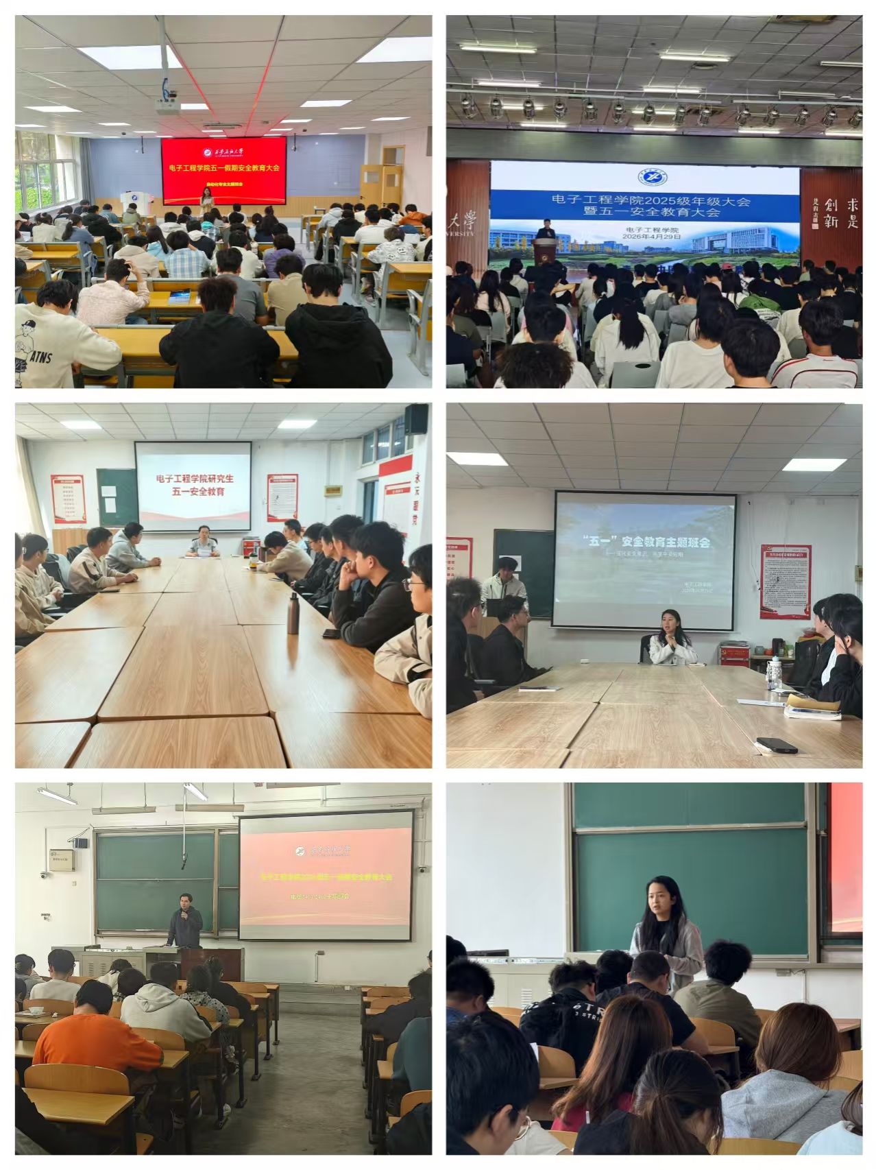 为切实保障学生假期安全,强化安全责任意识,近日,电子工程学院各年级召开“五一”假期安全教育年级大会,各年级同学参加会议。会议围绕假期离校安全、反诈防诈、在校管理等重点领域展开教育,筑牢校园安全防线。