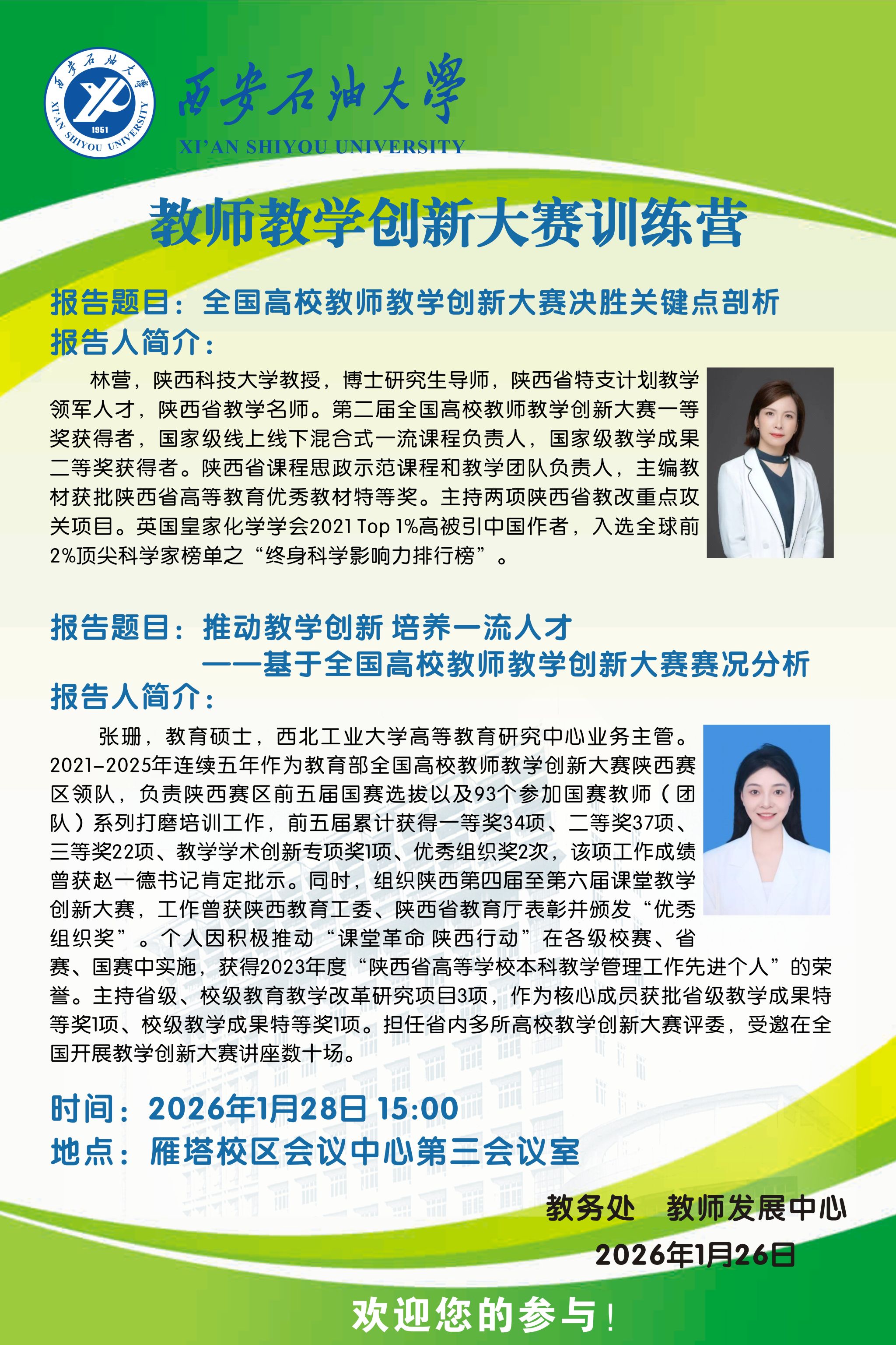 报告地点:雁塔校区会议中心第三会议室